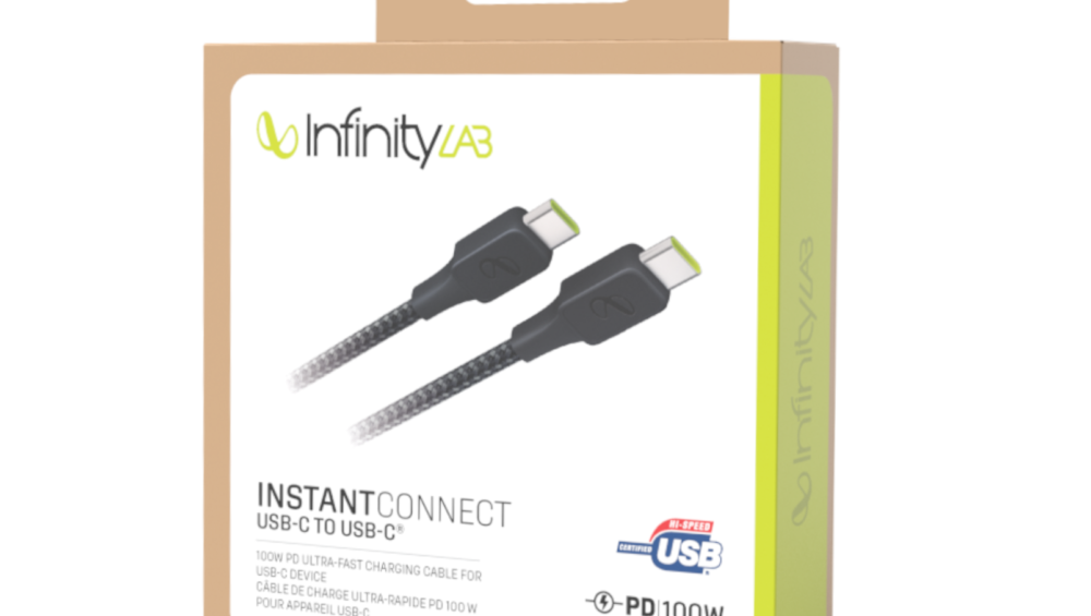 InfinityLab InstantConnect USB-C to USB-C – 100W PD Ultra-Fast Charging Cable for USB-C Devices – Black 5 feet